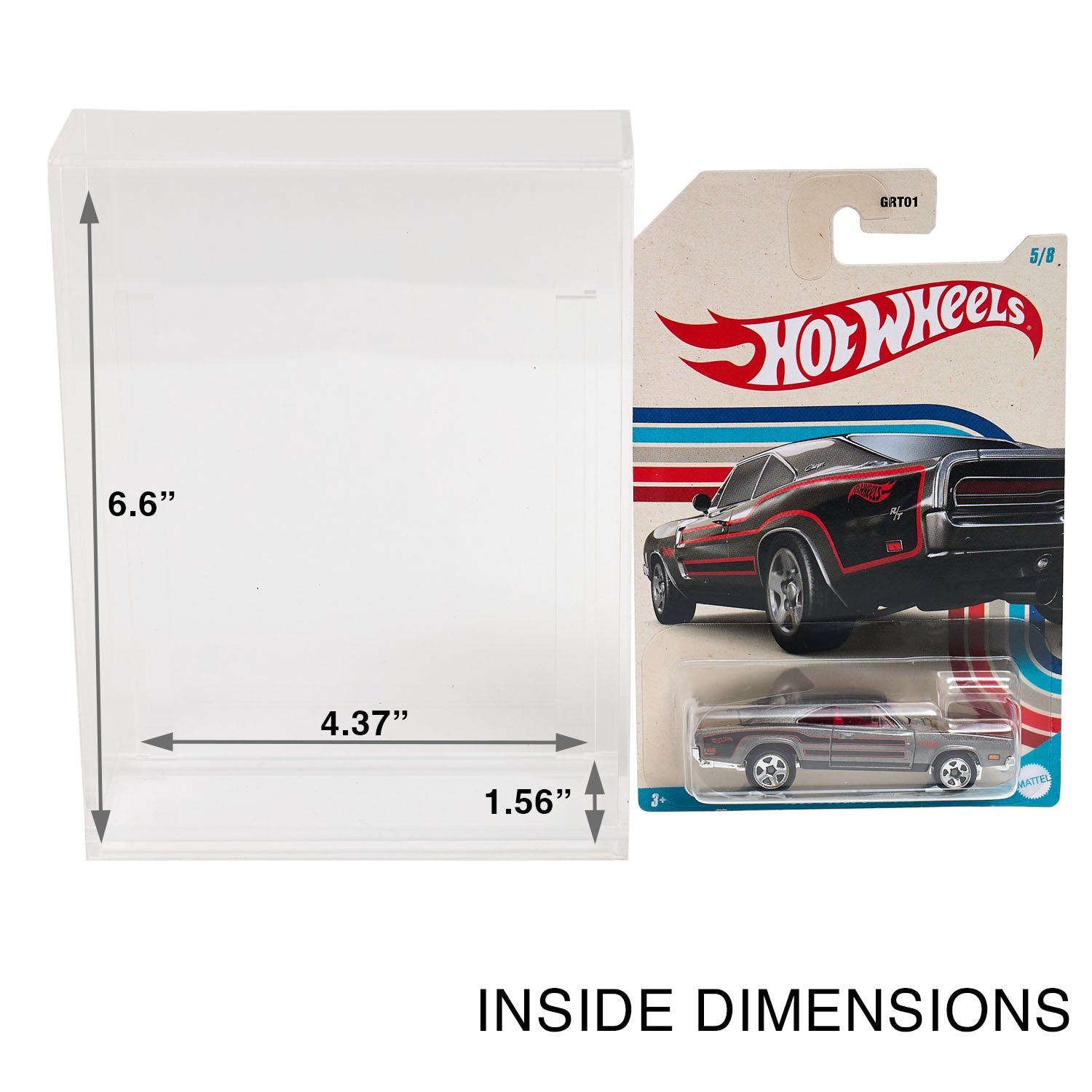 - COMPATIBLE WITH: Standard card size 6.5" x 4.25". Blister size up to 1.56" deep. All standard size mainline Hot Wheels, older Car Culture and mainline Matchbox with retail packaging. Will not fit 50th Anniversary Favorites, 2018 Car Culture or Retro Original. Please check exact dimensions before ordering.